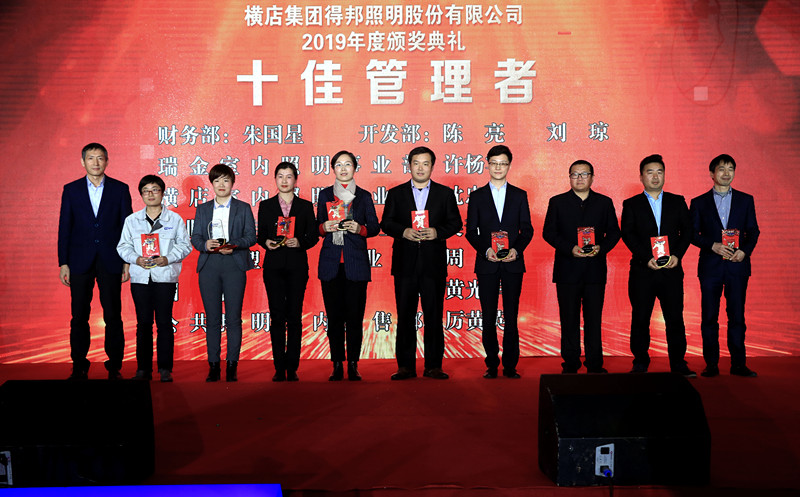 當(dāng)晚,橫店貴賓樓鴻運(yùn)廳熱鬧非凡,以“奮進(jìn)!向著更美好的明天”為主題的得邦照明2019年度頒獎(jiǎng)典禮在此隆重舉行,得邦照明全體高管、骨干、先進(jìn)人員等出席典禮。