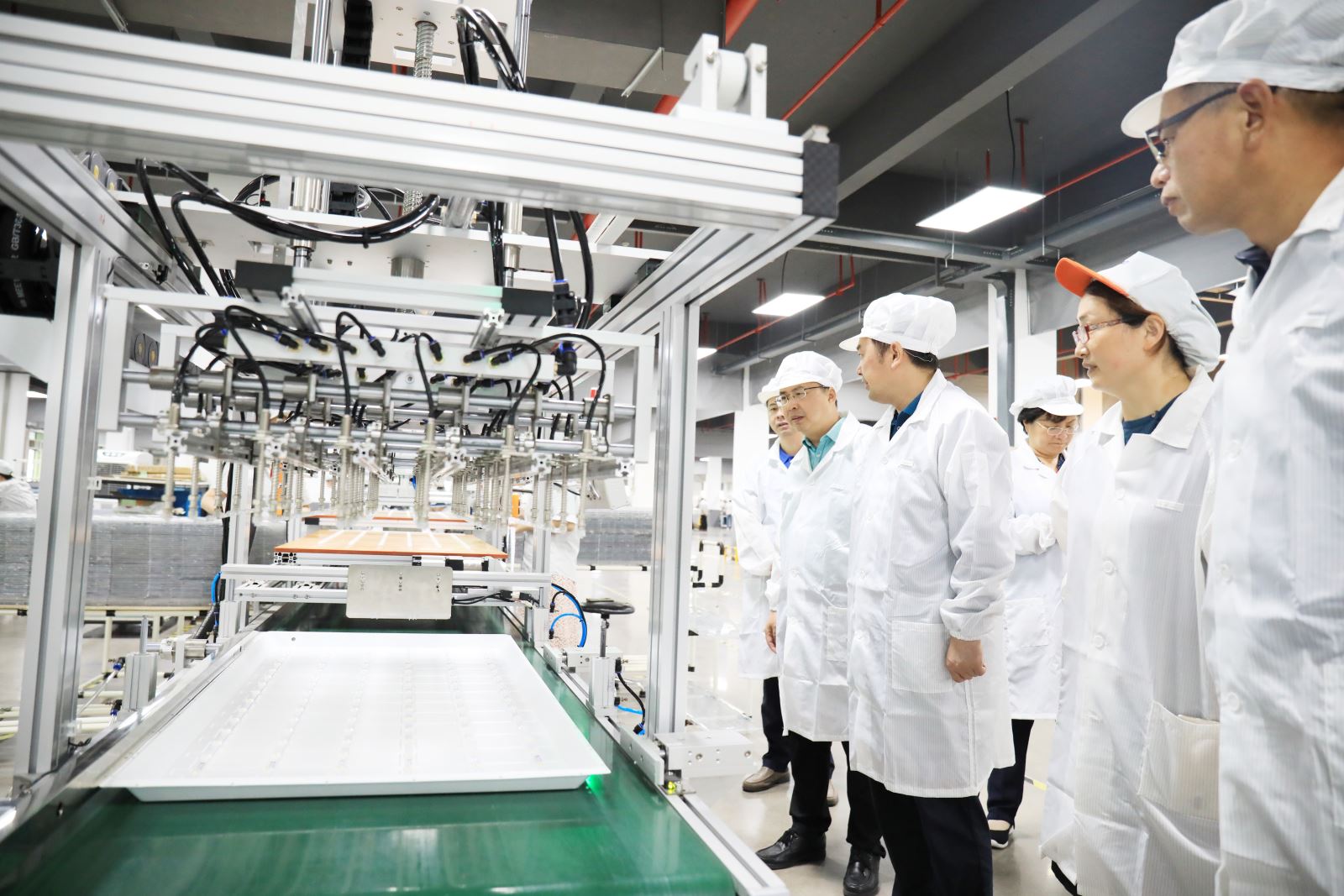 在吳一新和聶李迅等的陪同下,瑞金市委領(lǐng)導(dǎo)一行參觀了得邦照明新廠區(qū)的生產(chǎn)車(chē)間。座談會(huì)上,吳一新就橫店集團(tuán)概況作簡(jiǎn)要介紹,并對(duì)得邦照明的經(jīng)營(yíng)概況、產(chǎn)業(yè)布局、戰(zhàn)略目標(biāo)、企業(yè)文化等情況向許銳一行進(jìn)行了詳細(xì)闡述。許書(shū)記充分肯定了橫店集團(tuán)的產(chǎn)業(yè)規(guī)模與取得的各項(xiàng)成績(jī),高度贊揚(yáng)了得邦照明在科技創(chuàng)新、生產(chǎn)制造、業(yè)務(wù)布局、發(fā)展規(guī)劃等方面的優(yōu)越性。