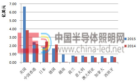 我國LED照明產(chǎn)品前十大市場國家狀況