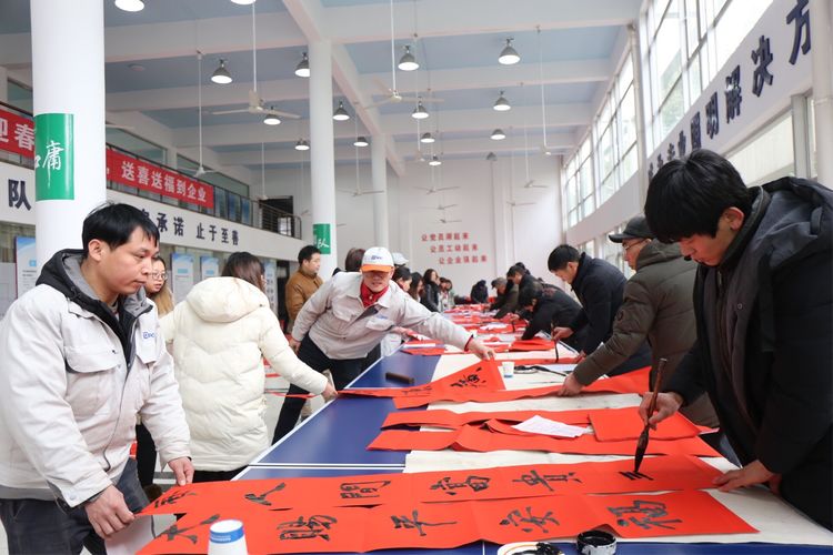 爆竹聲聲辭舊歲,歡歡喜喜過(guò)大年。春節(jié)是我國(guó)民間最重要的傳統(tǒng)節(jié)日,貼福字、貼春聯(lián)作為春節(jié)里不可缺少的一種文學(xué)祝福形式,寄托了每個(gè)家庭在新的一年最美好的愿望。為增添節(jié)日氣氛,表達(dá)企業(yè)對(duì)員工的真摯祝福,1月29日,得邦照明聯(lián)合橫店集團(tuán)黨委,在公司黨群服務(wù)中心舉辦"迎新迎春寫(xiě)春聯(lián),送喜送福到企業(yè)"活動(dòng),由集團(tuán)工委組織橫店書(shū)社書(shū)法愛(ài)好者現(xiàn)場(chǎng)書(shū)寫(xiě)春聯(lián),贈(zèng)送給職工,活動(dòng)引起了員工的熱烈反響。